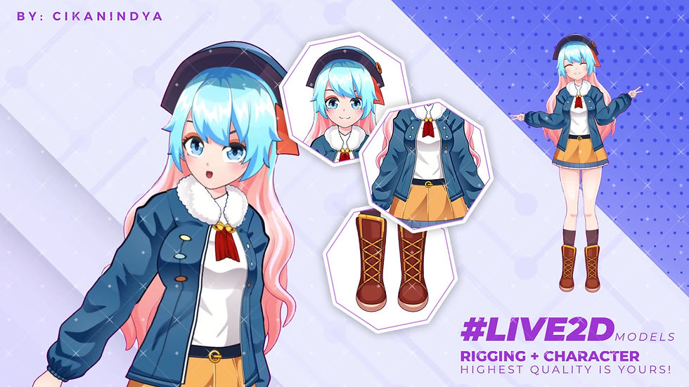 Vibrant Blue & Pink Haired VTuber Girl Live2D Model - Stand Out in Stream